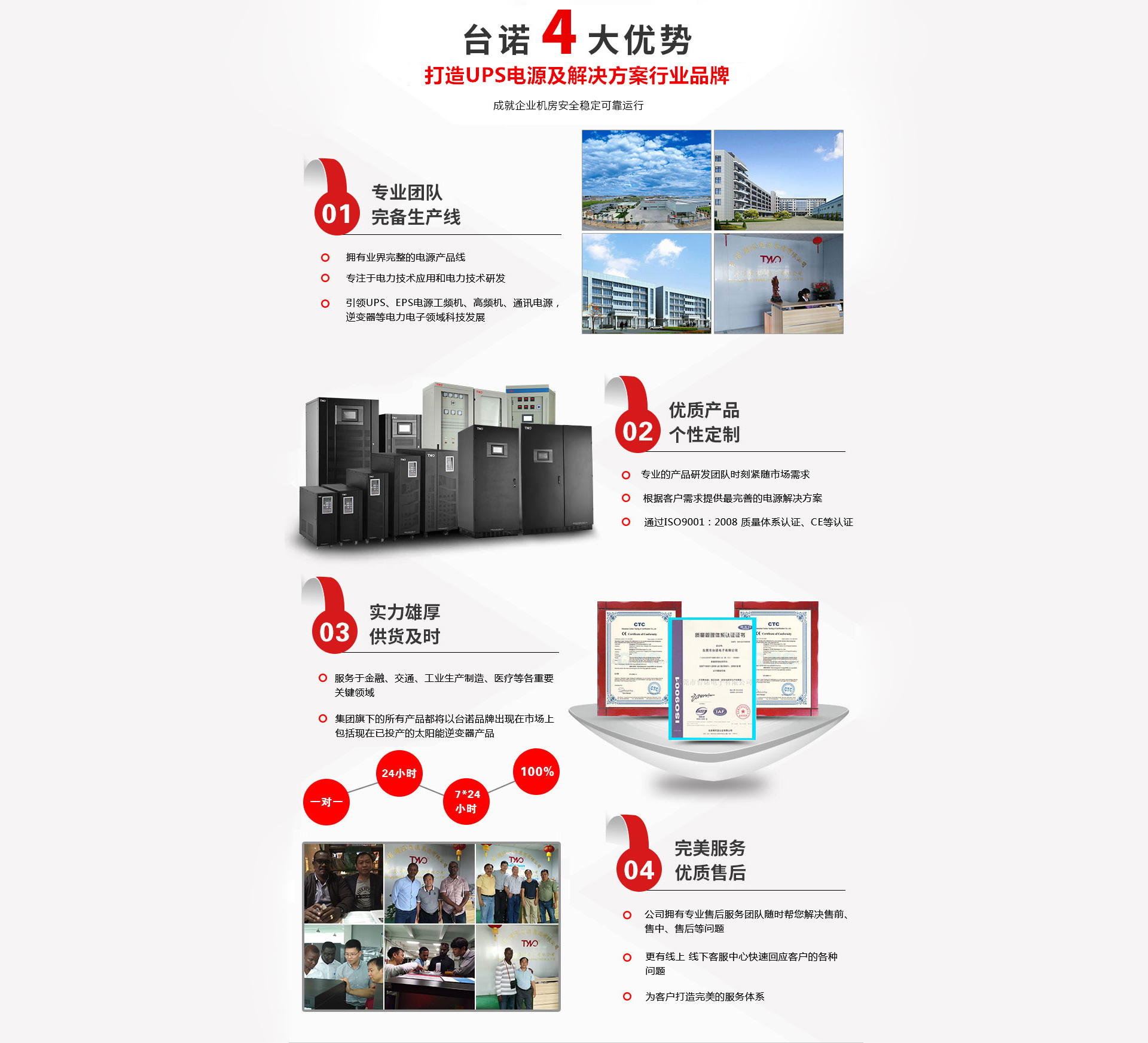 東莞市臺諾電子有限公司是一家以新能源、UPS不間斷電源、EPS應急電源、交直流穩(wěn)壓電源、鉛酸免維護蓄電池、智能變頻電源、智能開關電源、智能一體化逆變電源、智能電源監(jiān)控系統(tǒng)的研究、開發(fā)、生產(chǎn)、經(jīng)營、銷售及技術推廣等多行業(yè)發(fā)展高新企業(yè)。公司位于東莞市毗鄰中國南方經(jīng)濟重地廣州、深圳,交通發(fā)達,信息暢通。系廣東重點高新技術企業(yè)、東莞市創(chuàng)新型企業(yè)、也是中國電源協(xié)會、廣東省材料與器件產(chǎn)業(yè)技術創(chuàng)新戰(zhàn)略聯(lián)盟、 東莞市臺諾電子有限公司隸屬于臺諾集團,是一家有多年UPS集設計研發(fā)、生產(chǎn)銷售、售后服務為一體的公司,擁有業(yè)界完整的電源產(chǎn)品線,專注于電力技術應用和電力技術研發(fā)。公司致力于向全球客戶提供性能好、品質好的產(chǎn)品與服務。UPS、EPS電源工頻機、高頻機、通訊電源、光伏、逆變器等電力電子領域科技發(fā)展,創(chuàng)造可靠、節(jié)能的產(chǎn)品,致力于為客戶提供完善的電源解決方案。產(chǎn)品廣泛應用于政府、金融、通信、教育、交通、氣象、廣播電視、工商...